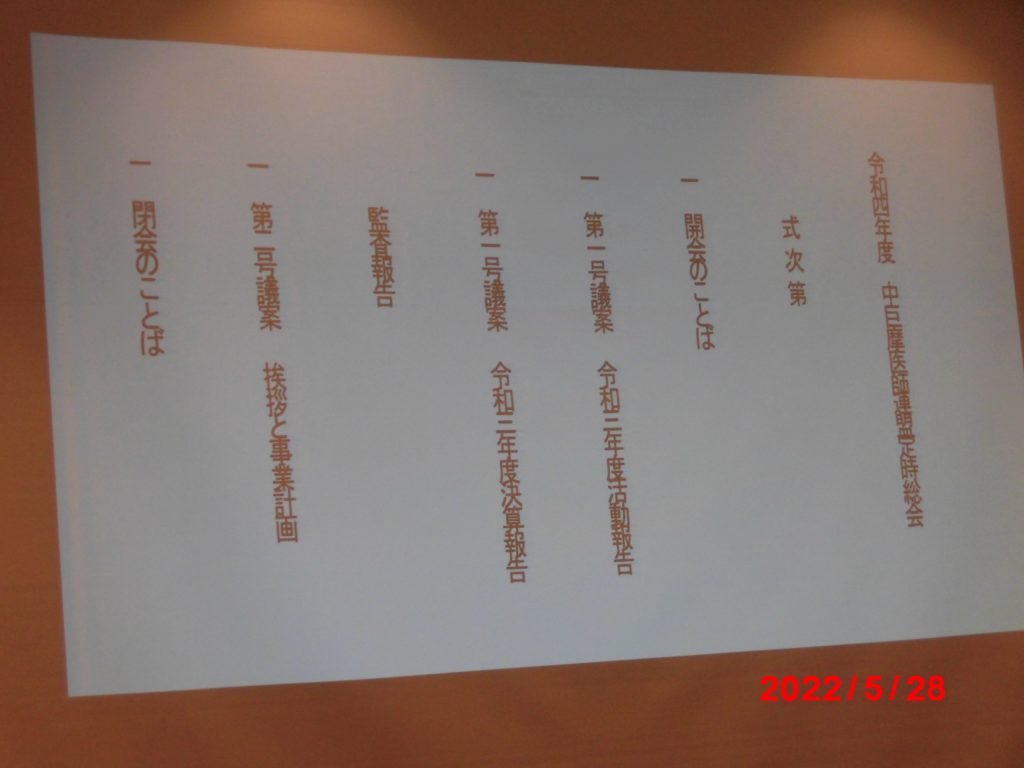 ● 令和4年 5月28日 令和4年度中巨摩医師連盟定時総会が開催されました。